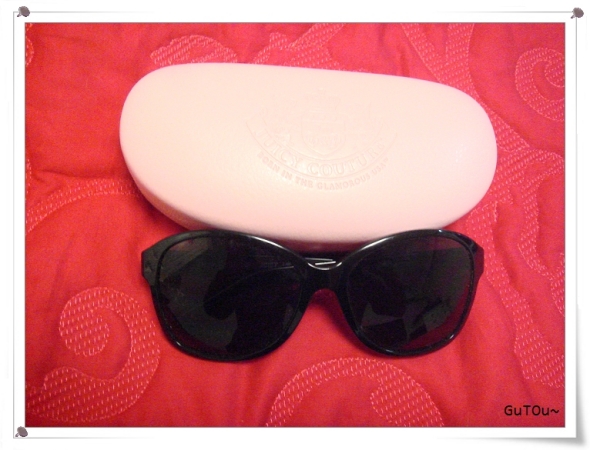 2.juicy的黑色墨镜,镜角是四叶草,好可爱的。盒子粉的很漂亮,也是淘宝买的,才500多。香港专柜的juicy好贵,淘宝上的价格可爱多了~