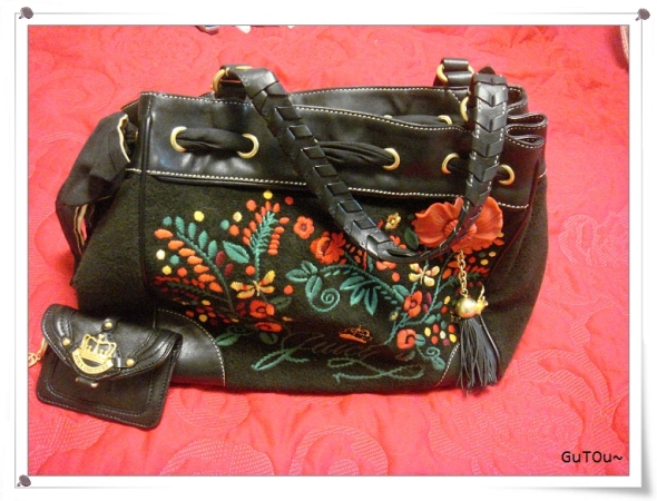 7.juicycouture白日梦包包和零钱袋:这个也是网购的,包包是juicy最经典的白日梦,绒绒的布料,淘宝上仿得很多。偶找的是代购店,830还包邮。白日梦系列的包包很实用,也很好用,能放很多东西呢。这个冬天我一直都背这个,因为家里装修,比较脏~~~不想背太矜贵滴,这个好打理的很。如果出门要坐火车什么也用这个,不怕弄脏不怕压~~~话说我挺喜欢这个颜色滴,不过姐姐说好俗。。。我倒是觉得俗的很好看啊。。。。那个零钱袋也是美代的,199+10元邮费,真皮的所以很硬,样子好看其实放不了什么东西,不喜欢啊。我把包包拍的真难看。。。最近一直没用在橱里被压得乱七八糟。。。