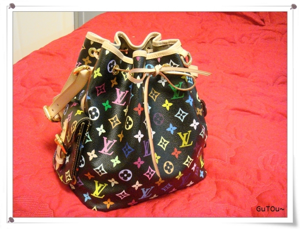 2.LV33彩的桶包:相信这个包大家都很眼熟吧,最近社区有很多MM都有秀过。在香港买的,15000港币。很贵啊很贵,偶不是有钱人,真是太奢侈了买这个包。买它是因为大学时有个女生买了,天天背,深深的伤害了我这颗爱慕虚荣的心。。。当时想多好看的包包啊,好配又好看,还是LV!!!现在自己买了回来算是心里平衡吧,好吧~~我就是个虚荣的女人。。。。。买了之后也不觉得多好,不是很实用,容易被偷东西,包也放不了多少东西,我比较喜欢大包,最好可以斜跨的,乱七八糟的东西随便塞,所以这个背的不多。说真的我更喜欢老花,觉得老花经典。这个33彩的好处是撞包几率低。话说LV的老化撞包几率实在太高。。。