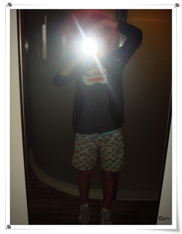 6.再上一张真人秀吧,偶在北京的酒店对着镜子自拍滴~~大嘴猴的裤子是淘宝上买的,65块吧,夏天穿穿很凉快啊。T是下面晒过滴~~虽然T很多,但其实偶平时就是这么穿衣服的。。。很没创意吧
