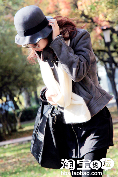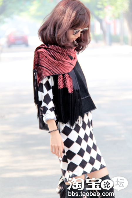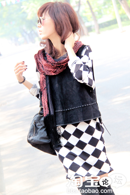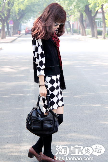 自己很喜欢这个黑白格的OP,怕冷,就多添了个长袜。