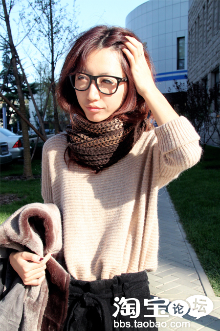 天气不算冷,就没有穿外套,披了个羊毛围巾就下楼了~
