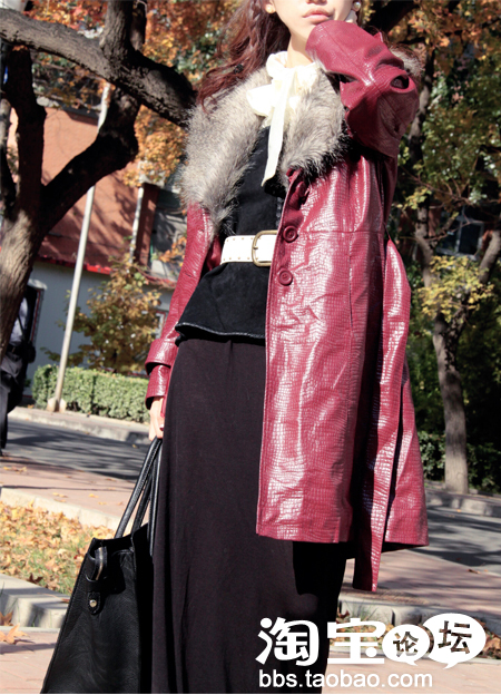 皮草小袄还是很抗寒的,下面搭配了紧身的皮裤,视觉上可以瘦身^^