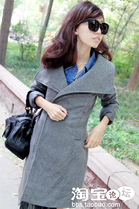 灰色羊毛大翻领大衣真的超级保暖,而且也很修身形,