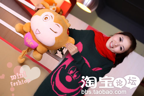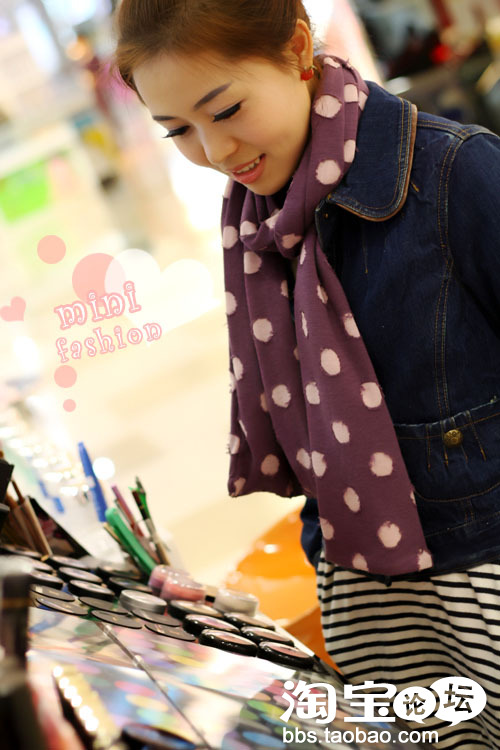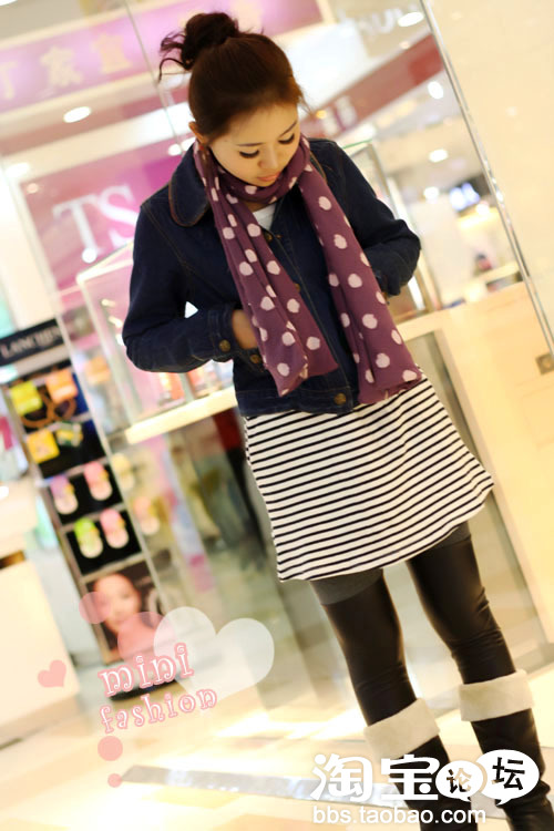 我选择了米奇的兔毛毛衣+条纹紧身打底裤+围脖