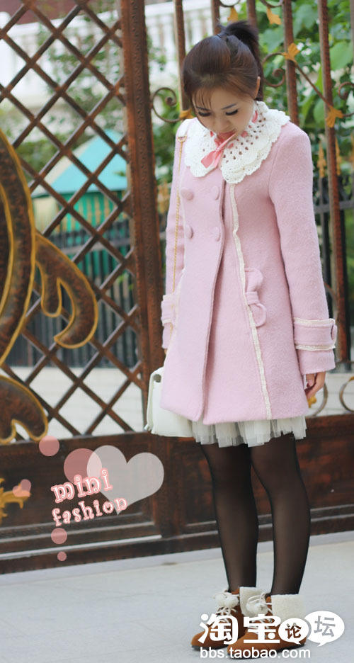 两件套碎花裙+韩版糖果毛呢大衣+勾花领带