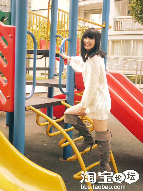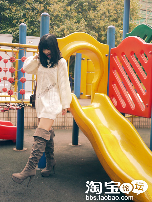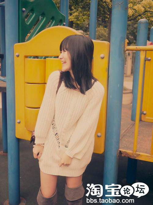 宽松镂空大毛衣这季很红呐 长靴才¥99啊!!超爱的~~~~