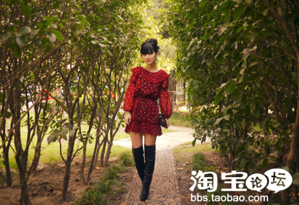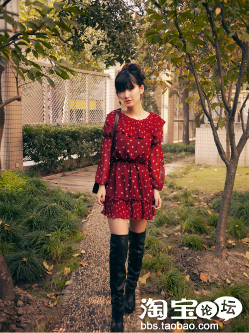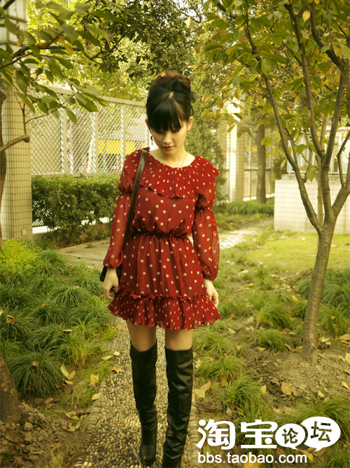 超喜欢的枣红色~!!复古复古复古!!!其实我平时不怎么爱小圆点 但是这件就是虏获了我の心