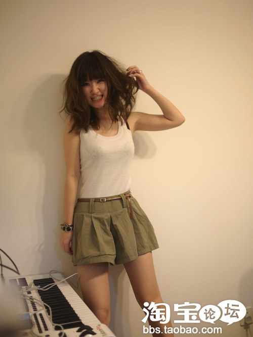 找到几年前买的ROCK IT NOW上衣 配上破破烂烂的牛仔短裤 整个就很搭啊 嘿嘿嘿!!!
