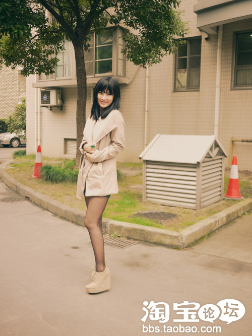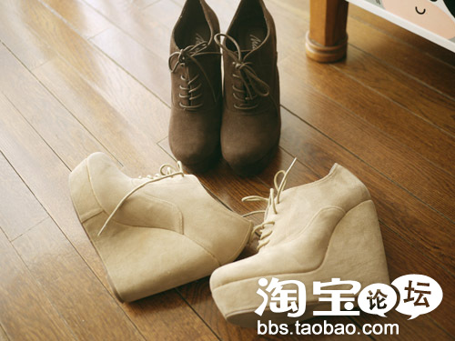 穿了坡跟靴的咖啡色版本哦~ 配了复古花边小白袜 显得腿细呐!!姐妹们可以尝试下哦~~