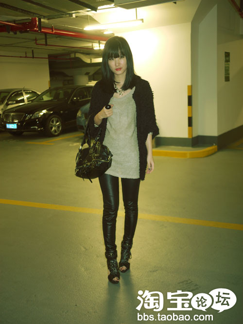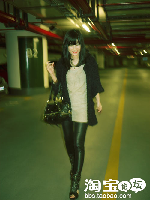 很喜欢的反光leggin 配高帮短靴 欧美风捏~~~ 很爱在停车场里拍照 O(∩_∩)O哈哈