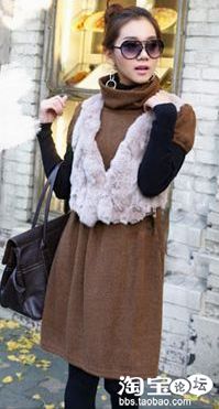 薄薄的连衣裙或许在冬天里显得有些不符季节,只要搭上针织的背心从视觉上就温暖的许多,再加上皮草滚边的装饰和腰带收缩臃肿感,甜美可人儿。