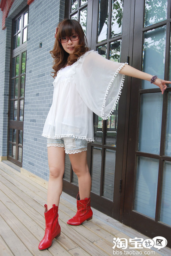 1.花边雪纺公主上衣+蕾丝花边牛仔短裤=韩式甜美公主