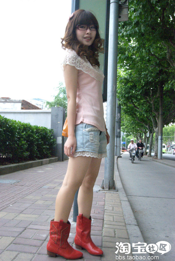 再配上漂亮的大红色短靴,时尚感十足的哟!