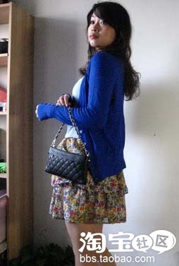 这件就是搭配蓝色针织纱的牛仔雪纺群,很漂亮吧!