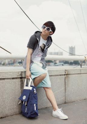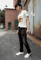 3.炎热的夏日搭配一条浅蓝牛仔五分裤,又清新又酷帅,脚上搭一双白色的帆布鞋,休闲中又让人不容忽视。