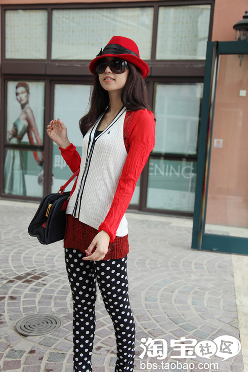 甜美日系风格的打底裤 上下对比还是比较强烈的