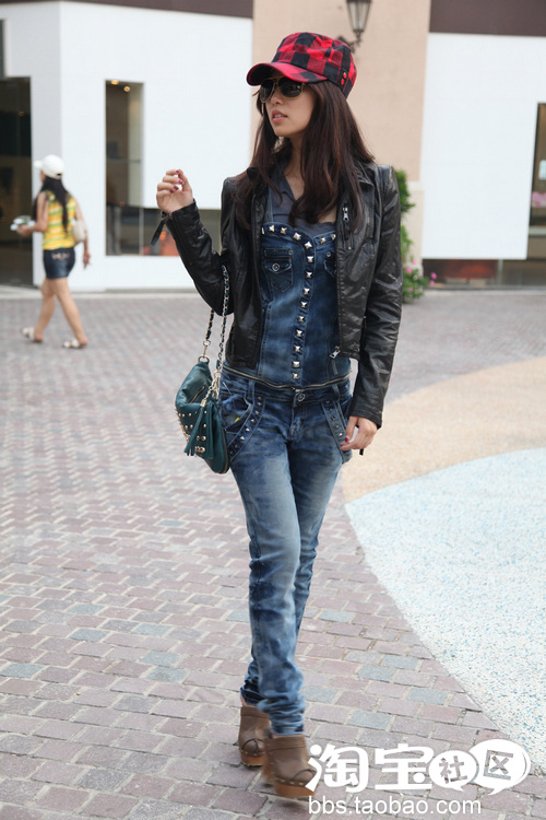 朋克来了,选择款机车点的皮衣,铆钉是必不可少的 加上铆钉牛仔背带身裤