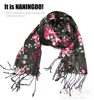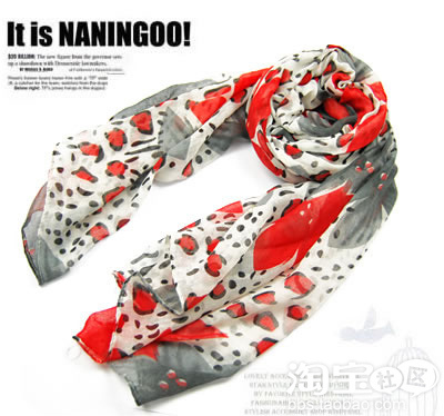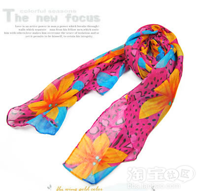 印花围巾,非常亮眼缤纷的色彩,好像所有的美丽都已溶入这小小的围巾当中。
