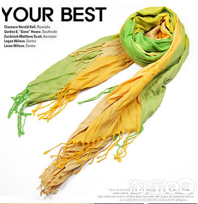 拼色围巾让围巾有了更多的造型,简单的T恤牛仔,搭配一条这样的围巾,相信你走在人群中也是闪亮的焦点。