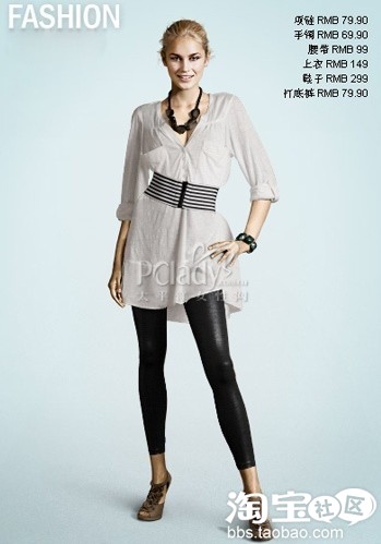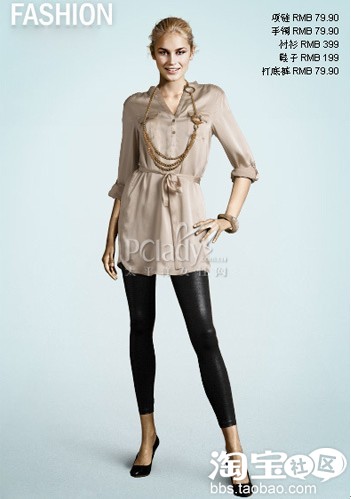 搭配技巧:打底裤良好的修身功效可是基本功能,却被很多MM所遗忘,一件半透明的素色长衫就能轻易勾勒出打底裤的所有性感一面,深V领款式的则让性感更加肆无忌惮,要是进职场,可得用一些项链来虚掩一下,聪明女人的性感是淡淡的,这才叫有Feel。