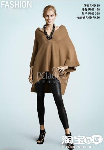搭配技巧:卡其色宽松罩衫直接搭配黑色打底裤,大胆却不张扬,胸口的线条设计,令你不用担心宽松款式而影响你的身材曲线,上松下紧的搭配策略可以巧妙打破黑色打底裤的单调。要想穿进职场,只需要再搭一条复古而典雅的项链。
