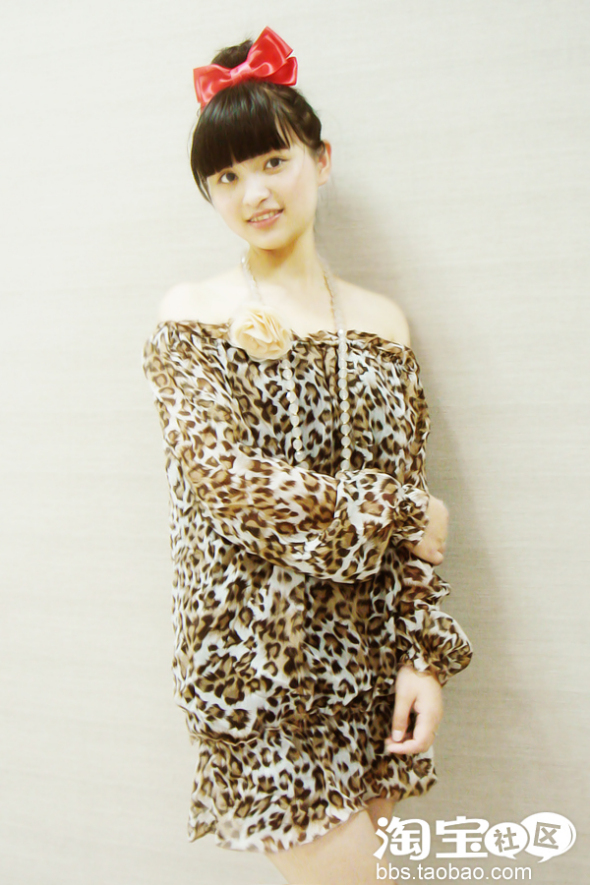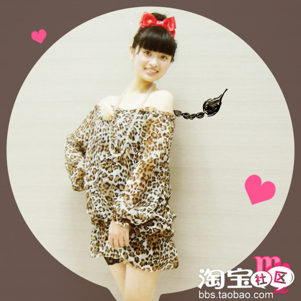 小狂野 豹纹露肩灯笼袖雪纺衫