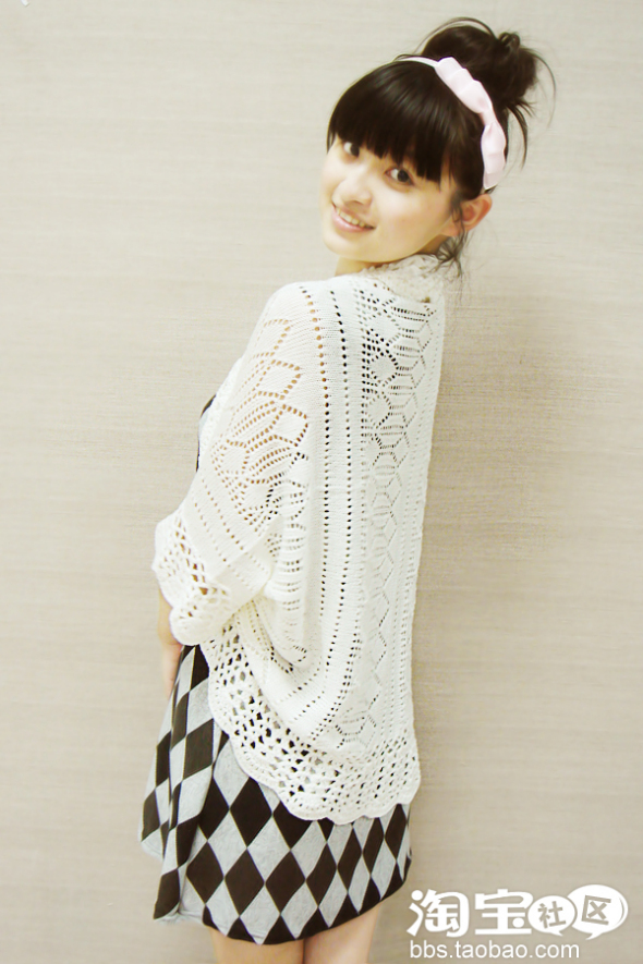 优雅系 圆片边 镂空勾花 针织披肩外套