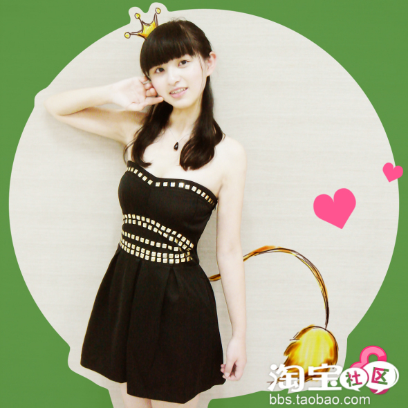 女王feel の 狮子座 黑色铆钉超修身性感抹胸裙