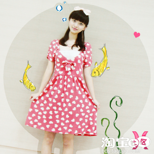 红色爱心V领 胸前蝴蝶结 连衣裙
