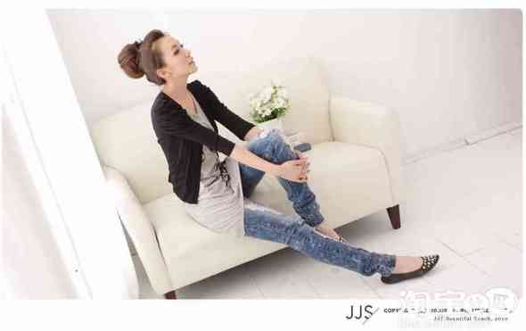 黑色百搭小外套,配上今年很流行的雪花牛仔裤