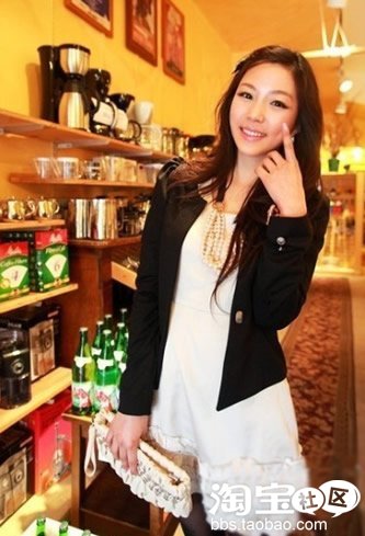 点评:小西装还可以应对早秋时节早晚上下班时气温较低的情况哦,白色的荷叶裙摆连衣裙搭配黑色的小西装来穿,穿出古典Feel之余还非常显身材,在胸前搭配金属质感的项链的处理手法能使整体效果更加Perfect哦。