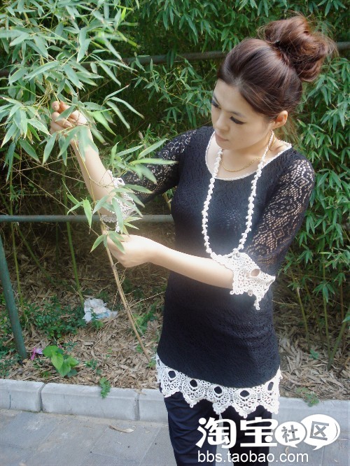 嘿嘿~是不是有点小性感,袖子是黑色雷丝的,设计挺特别的