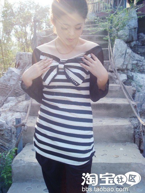 虽然是横条的,但是一点都不显胖,我喜欢哈哈