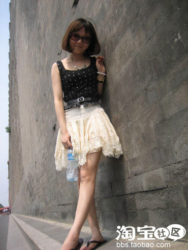4、闪闪水钻背心+辣椒款米色短裙+黑色花边短裙+辣椒款奥钻短项链。