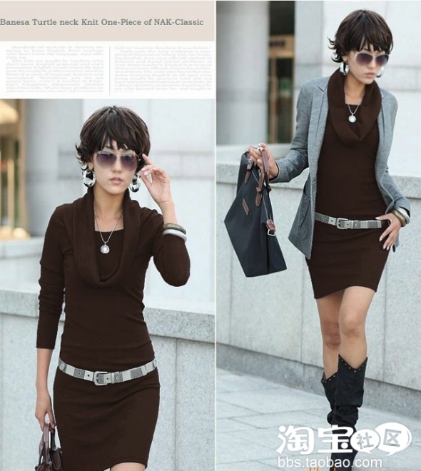 灰色休闲西装加秋季加厚大翻领连衣裙是聪明女人超喜欢的搭配。虽然从搭配上看所穿的衣服较多,但是一点都不显得臃肿。深色的加厚长袖裙不仅保暖,同时再配上一双时尚的高统靴子,极好地修饰出女性的身形,走在大街上不时会引来许多路人的回头目光,更增强你对工作和事业的信心。