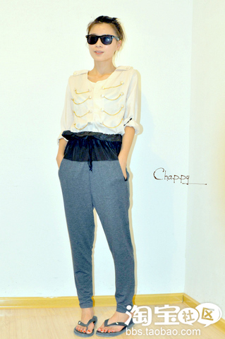 加上拼接感的高腰裤 又非常的特别得裤子