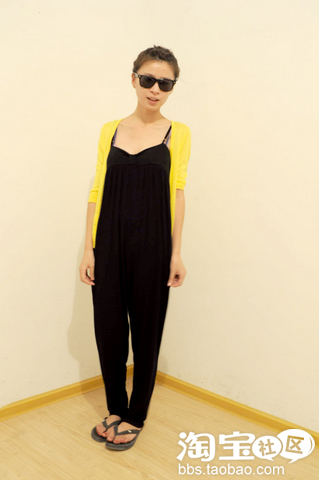 连体裤又是大热啊大热 黑色连体裤+人字拖 这么一走