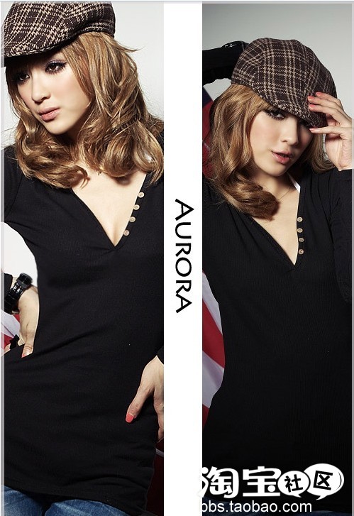 自留很有味道的一款~衣服是小V领的款式~精点T恤带点小女人味~尤其是随意思 搭点围巾~看起来简单中带有独特
