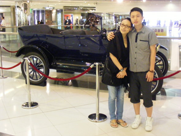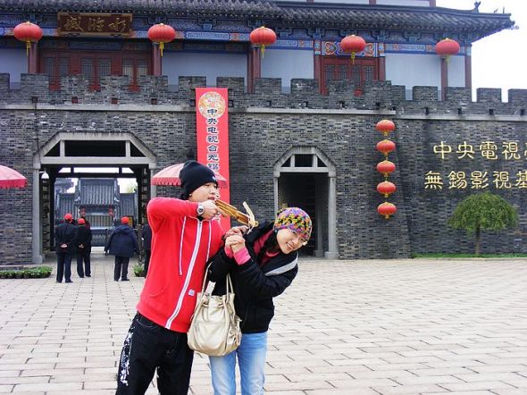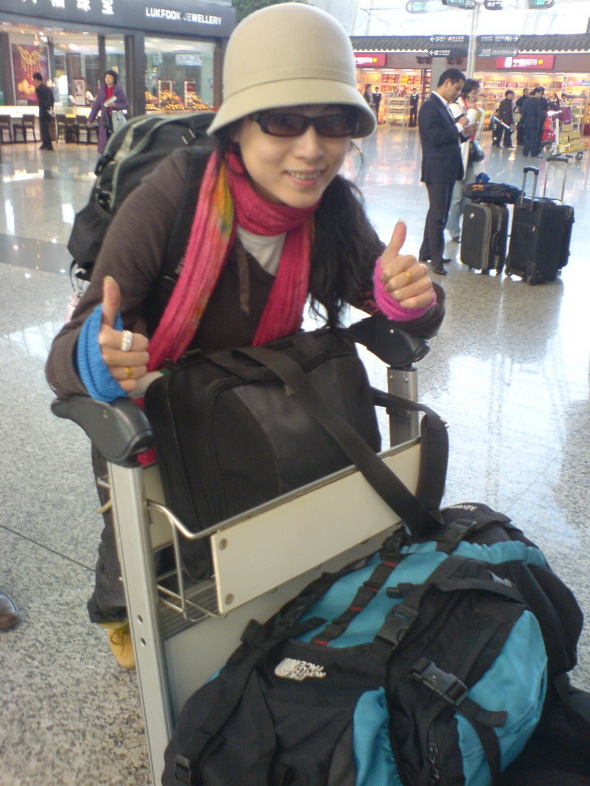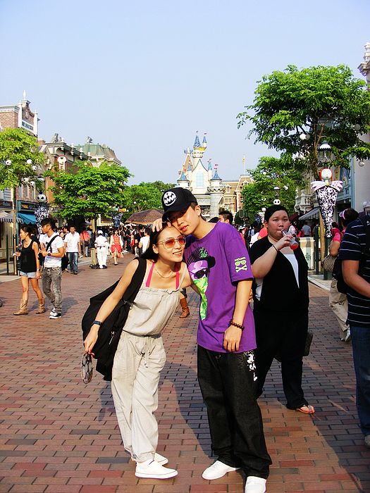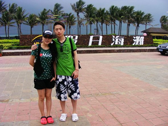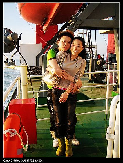 这张是和我家二掌柜在南海渡轮上,准备去度假,二掌柜被我遮住不少,不过还是可以看到D,他的全身行头,衣衣,裤裤,鞋鞋,还有额地腰带,陶瓷表手链都是网淘的咧······