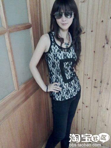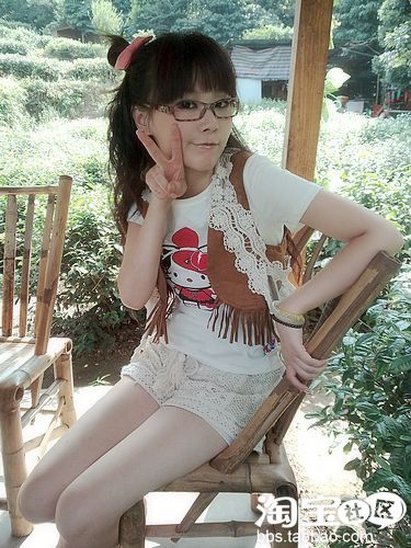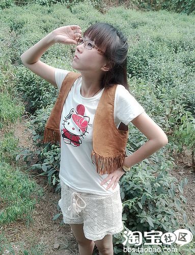自己搭配的一套 超可爱日系mm装——hello kitty的T恤+麓皮马甲+蕾丝勾花小背心,下面穿的是勾花短裤