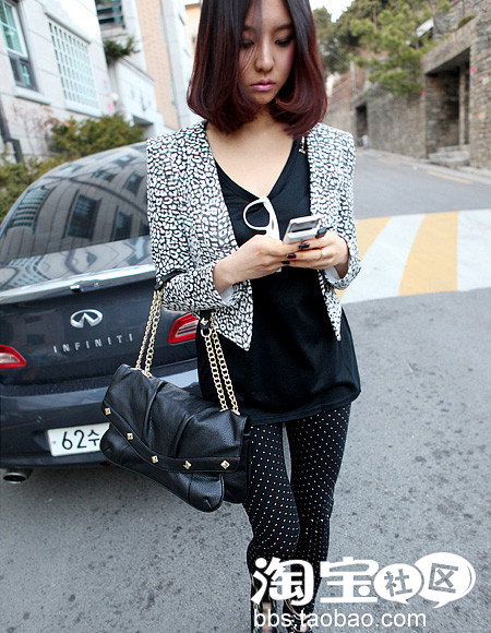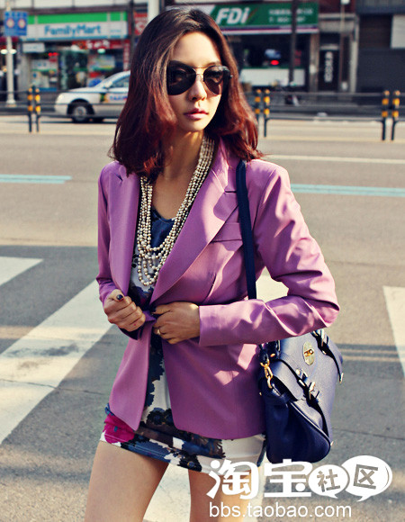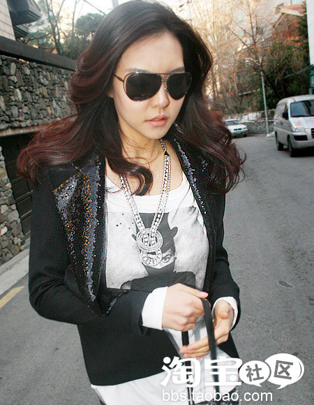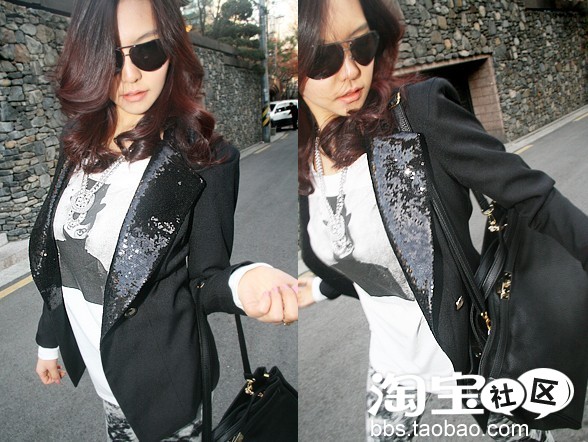 纽扣也是专门订购,是浅金色的圆锥形,为美眉增添了不少的帅气。