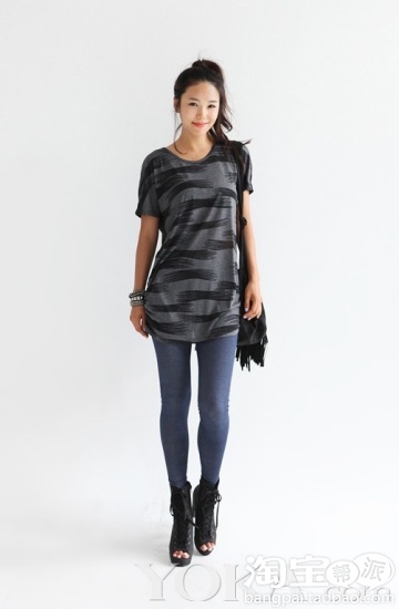 黑色长TEE搭配深蓝色打底裤,颜色上的细微差别就让整体跳出暗淡。