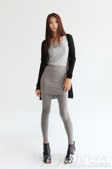 灰色的一身更有冲击感,这可是香港辣妈徐濠萦最爱的打底裤颜色!