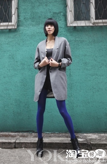 紫色的打底裤让身穿boy friend西装的女孩看上中多了一份妩媚诱惑。