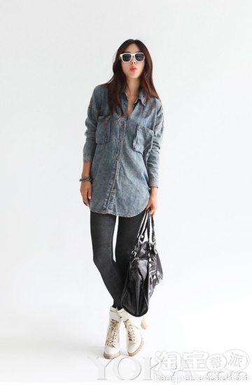 宽松随性的牛仔衬衫,长款的设计搭配一条打底裤就好,马丁靴重回到我们的视线,三者搭配酷感十足。