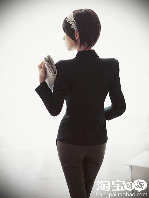 单扣金属+修身收腰白搭小西装+高腰长裤