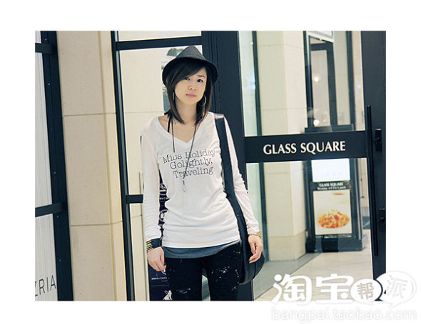 黑色白色休闲打底+笑眯眯的美女真是迷倒街上的过客。