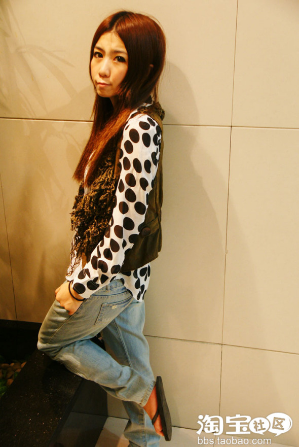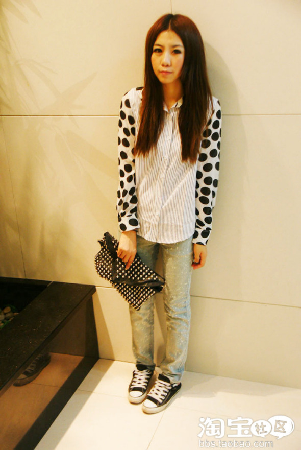 嗯哼,波点条纹的无素放一起了,大胆的设计,别出心栽呢,很英伦哈。~