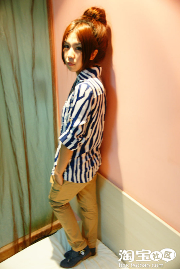 条纹衬衫,显的很院风哦,哈哈,配个眼镜看起来更斯文啦